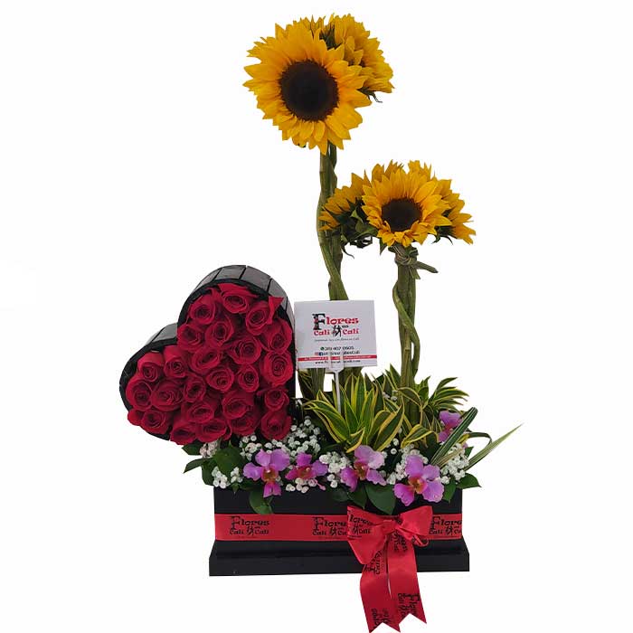 NOMBRE DEL PRODUCTO: Arreglo Floral En Forma de corazón con Girasoles